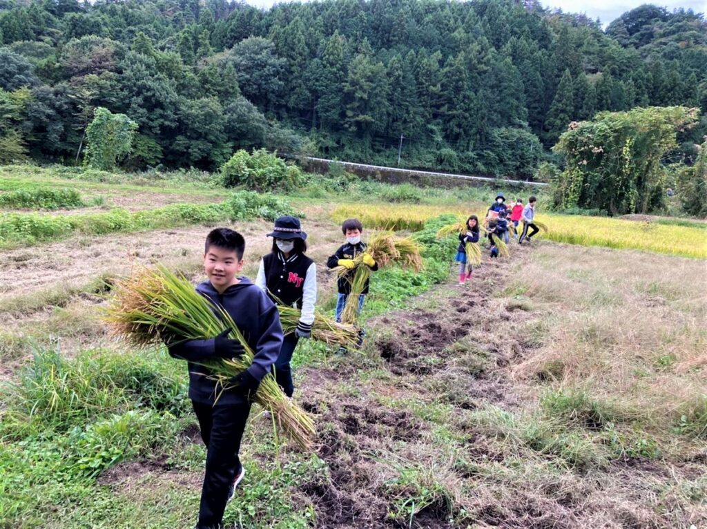 現代においては、食べ物はお店で買うものであり、多くの子ども達がどのようにして生産されるのか分からなくなってきています。里山学校では、地域の方々と様々な野菜や、稲、果樹を育てています。収穫だけではなく、土を耕し種を植えるところから、水やりや草むしりをして育て、実りを収穫して味わう。その一連の流れの中で、子ども達は五感を通して様々なことを学ぶそうです。